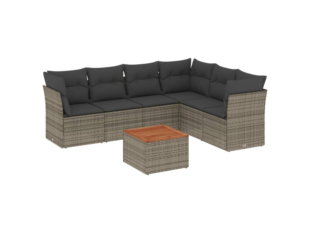 7dílná zahradní sedací souprava s poduškami šedá polyratan 3223659