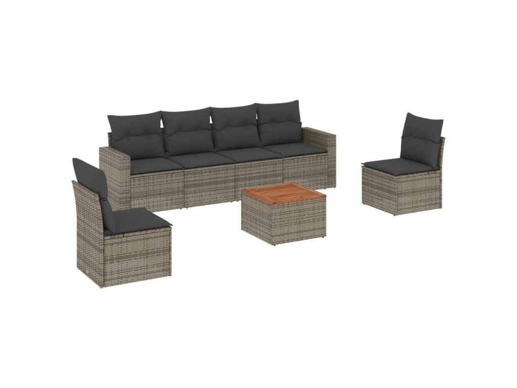 7dílná zahradní sedací souprava s poduškami šedá polyratan 3224072