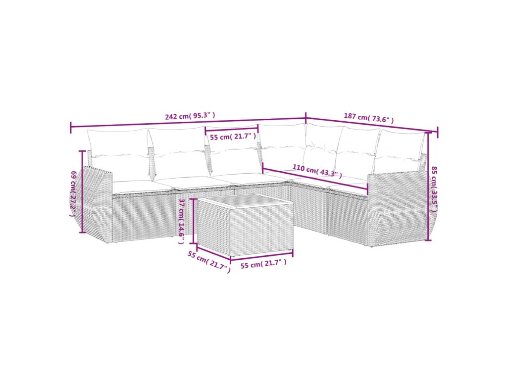 Tato zahradní sedací souprava je dokonalým doplňkem vaší zahrady, terasy nebo dvorku a poskytne vám pohodlné a příjemné místo, kde si můžete povídat s rodinou a přáteli nebo jen tak odpočívat a užívat si pobyt venku.