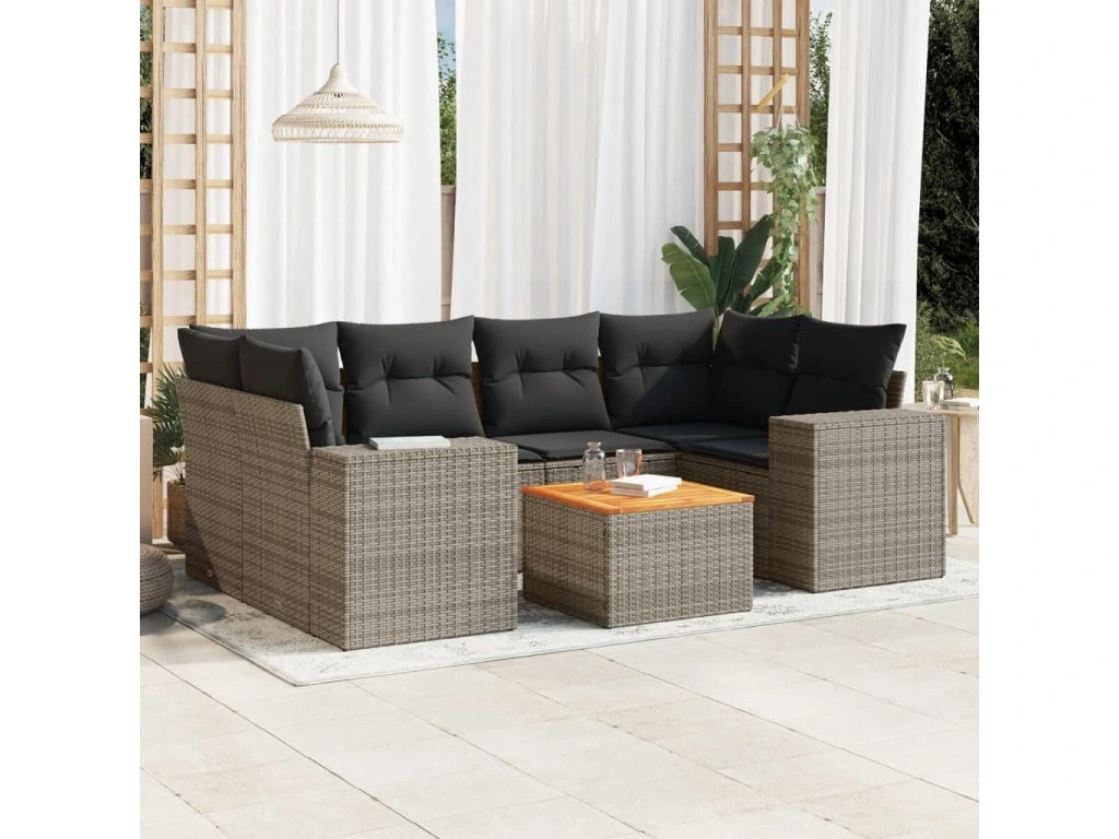 7dílná zahradní sedací souprava s poduškami šedá polyratan 3225346