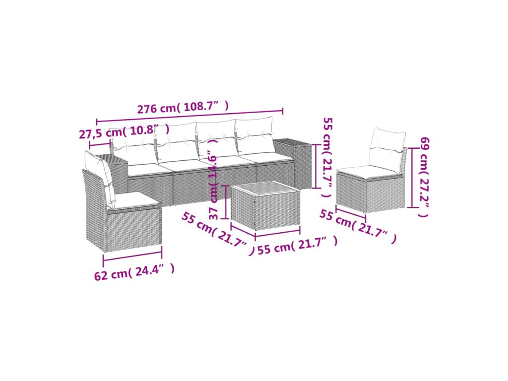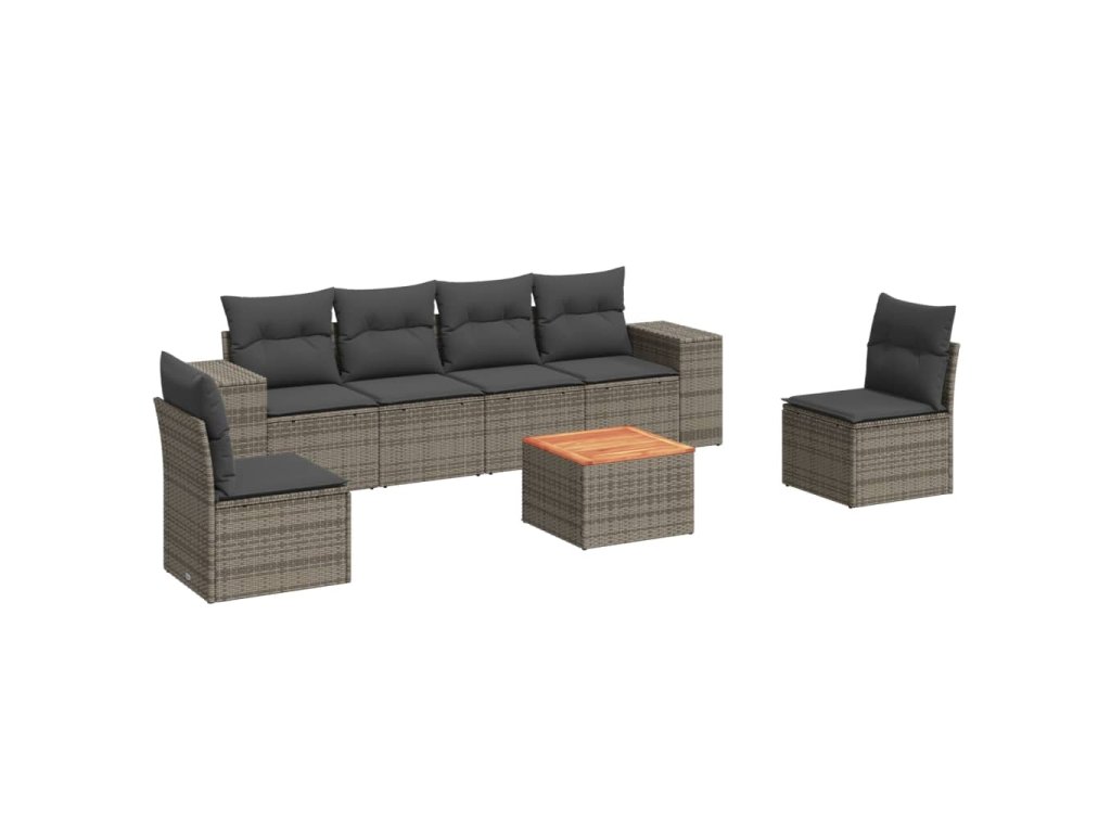 7dílná zahradní sedací souprava s poduškami šedá polyratan 3225395