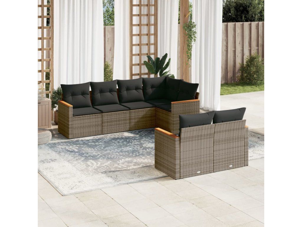 7dílná zahradní sedací souprava s poduškami šedá polyratan 3226144
