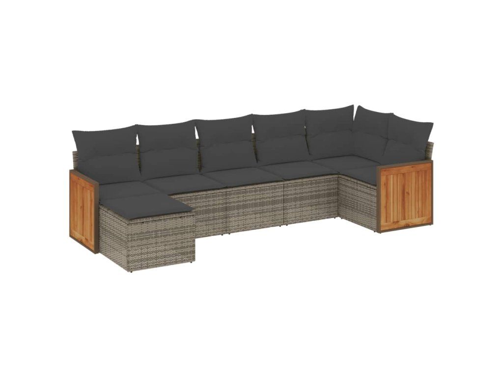 7dílná zahradní sedací souprava s poduškami šedá polyratan 3227873