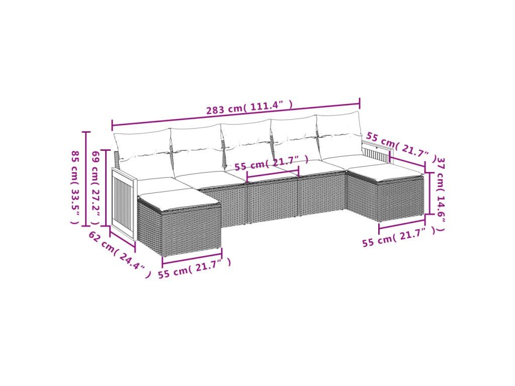 7dílná zahradní sedací souprava s poduškami šedá polyratan 3227915
