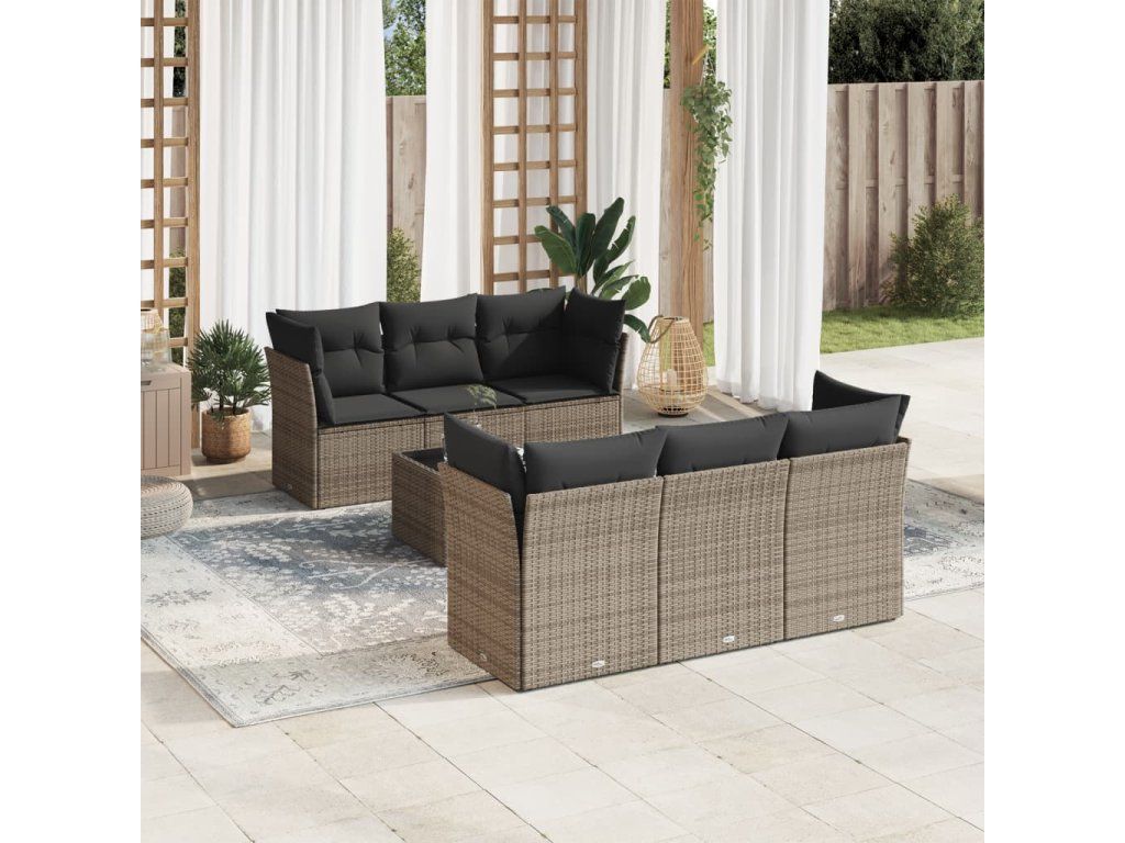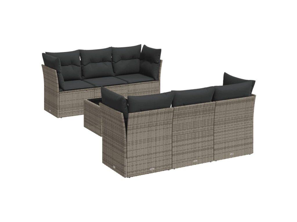 7dílná zahradní sedací souprava s poduškami šedá polyratan 3249099