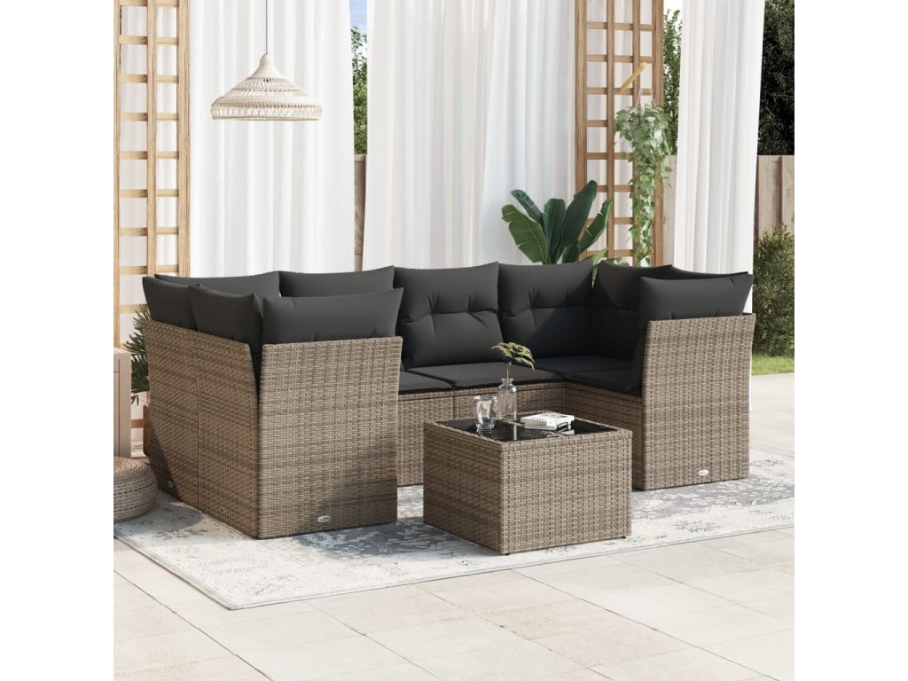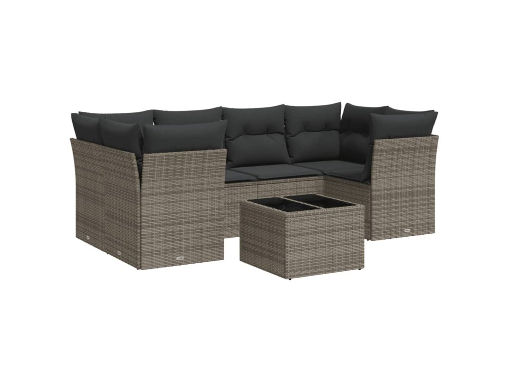 7dílná zahradní sedací souprava s poduškami šedá polyratan 3249109