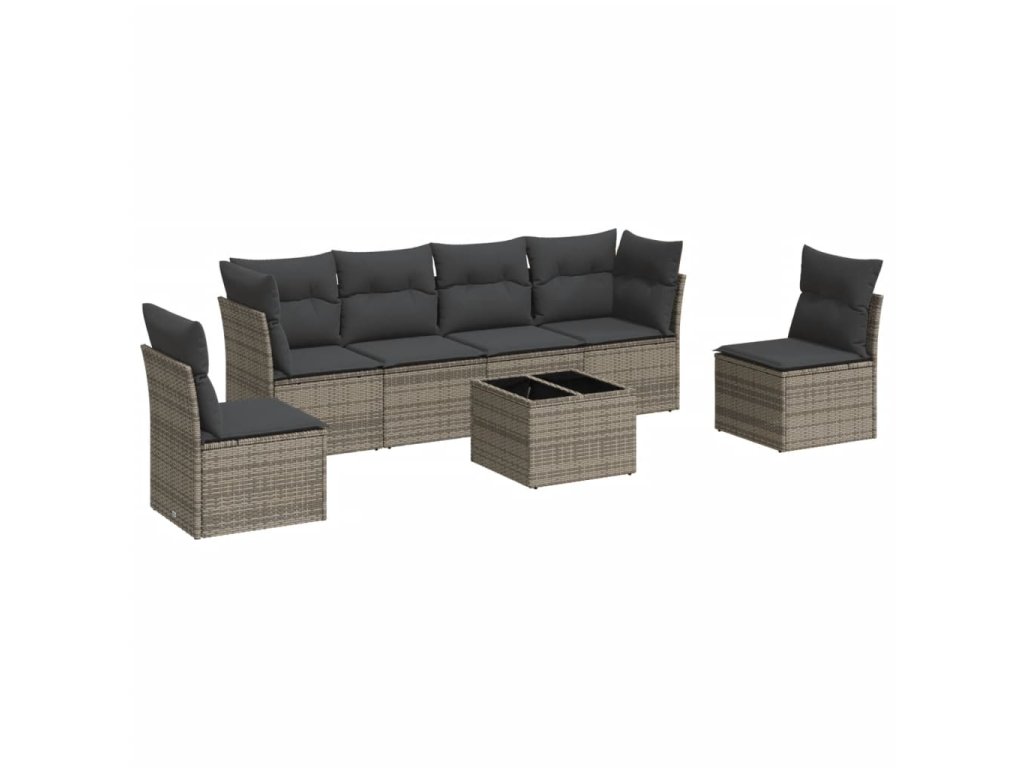 7dílná zahradní sedací souprava s poduškami šedá polyratan 3249219