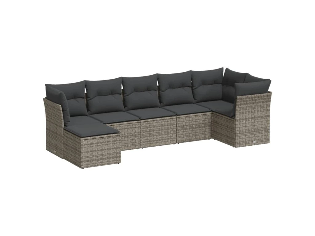 7dílná zahradní sedací souprava s poduškami šedá polyratan 3249809