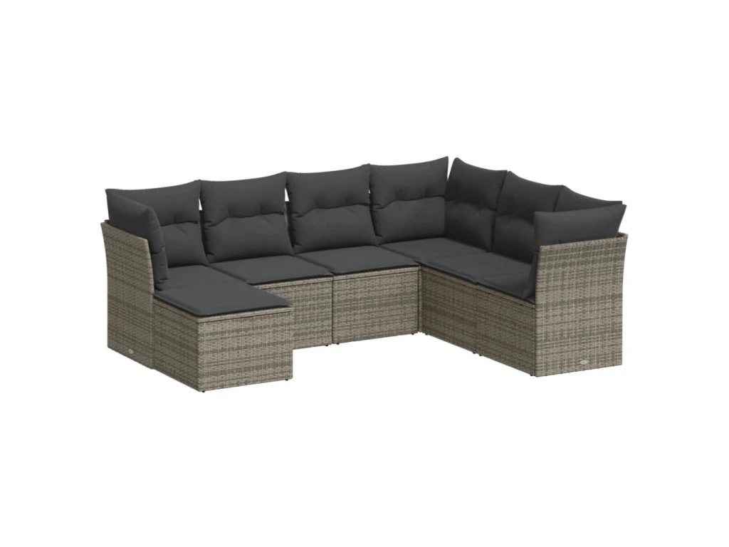 7dílná zahradní sedací souprava s poduškami šedá polyratan 3249829