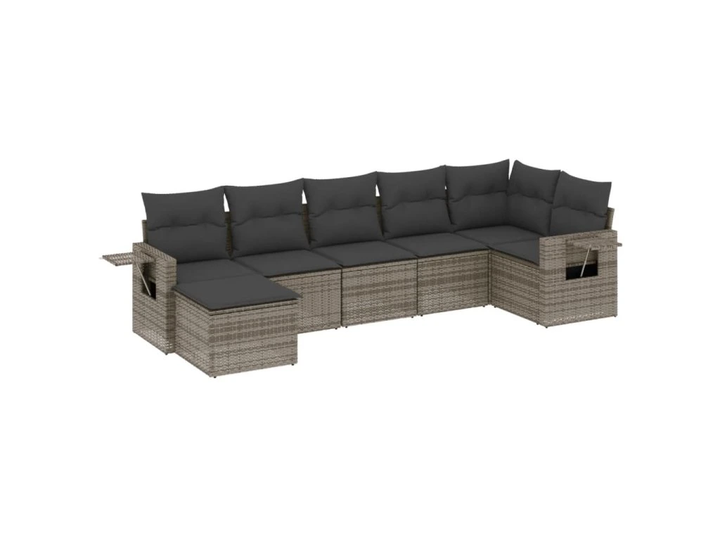 7dílná zahradní sedací souprava s poduškami šedá polyratan 3252817