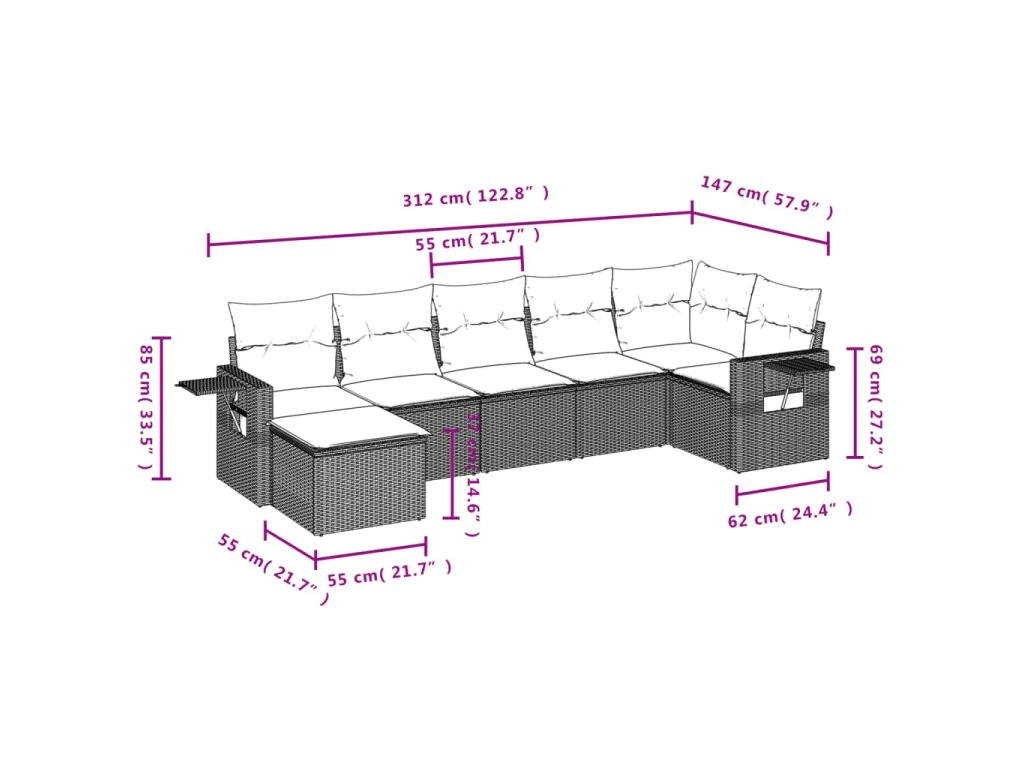 Tato zahradní sedací souprava je dokonalým doplňkem vaší zahrady, terasy nebo dvorku a poskytne vám pohodlné a příjemné místo, kde si můžete povídat s rodinou a přáteli nebo jen tak odpočívat a užívat si pobyt venku.