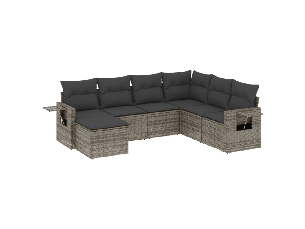 7dílná zahradní sedací souprava s poduškami šedá polyratan 3252837