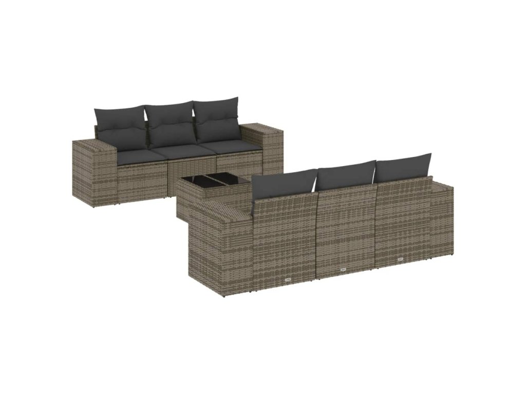 7dílná zahradní sedací souprava s poduškami šedá polyratan 3254647