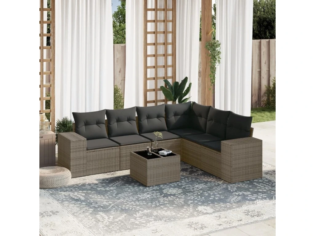 7dílná zahradní sedací souprava s poduškami šedá polyratan 3254957