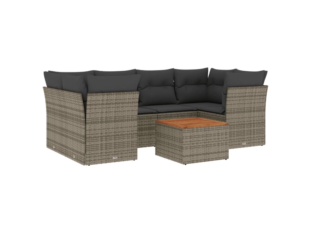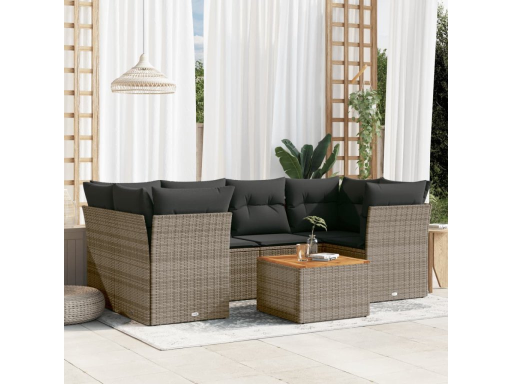 7dílná zahradní sedací souprava s poduškami šedá polyratan 3255829