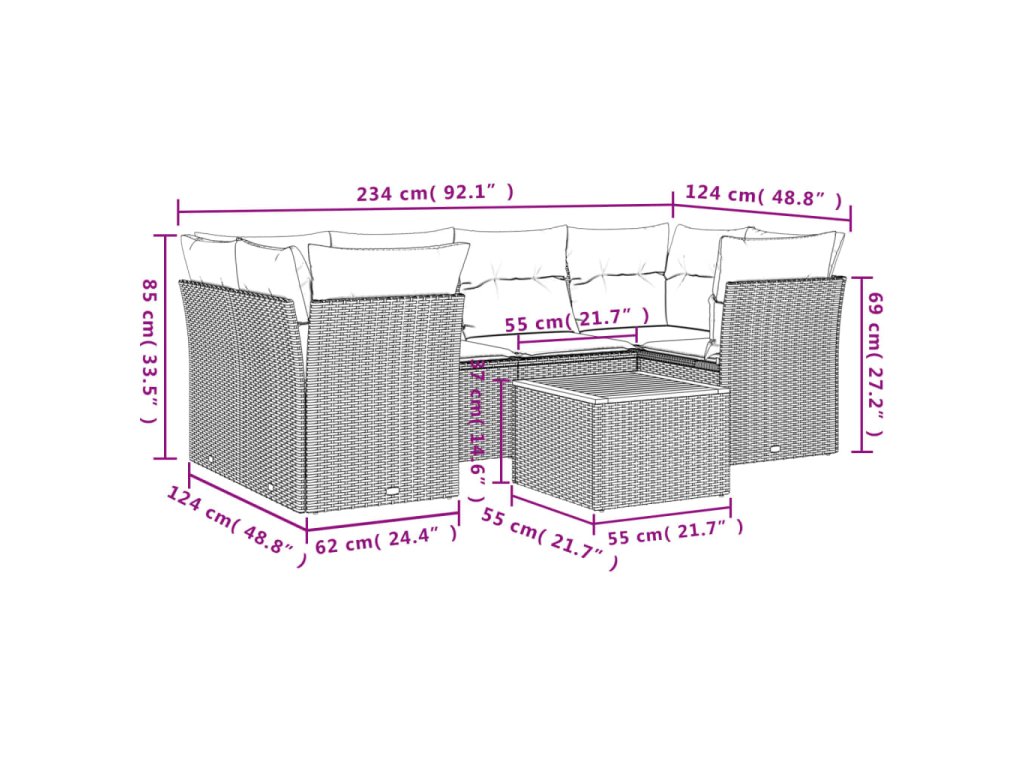 Tato zahradní sedací souprava je dokonalým doplňkem vaší zahrady, terasy nebo dvorku a poskytne vám pohodlné a příjemné místo, kde si můžete povídat s rodinou a přáteli nebo jen tak odpočívat a užívat si pobyt venku.