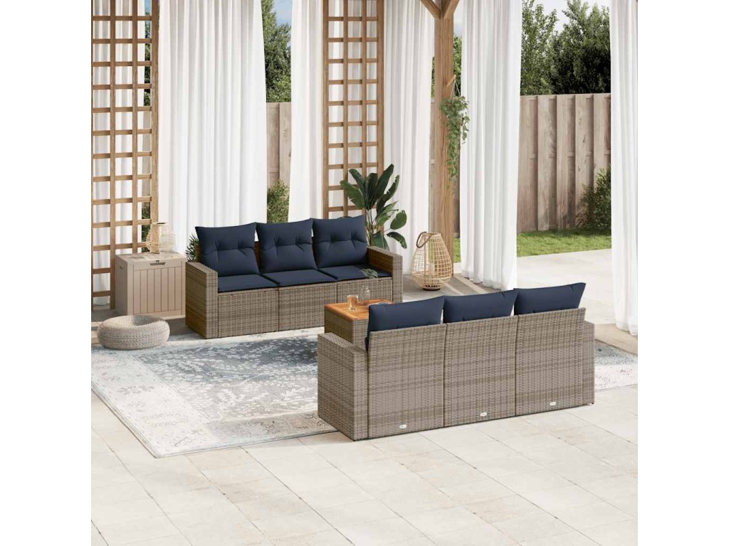 7dílná zahradní sedací souprava s poduškami šedá polyratan 3256348