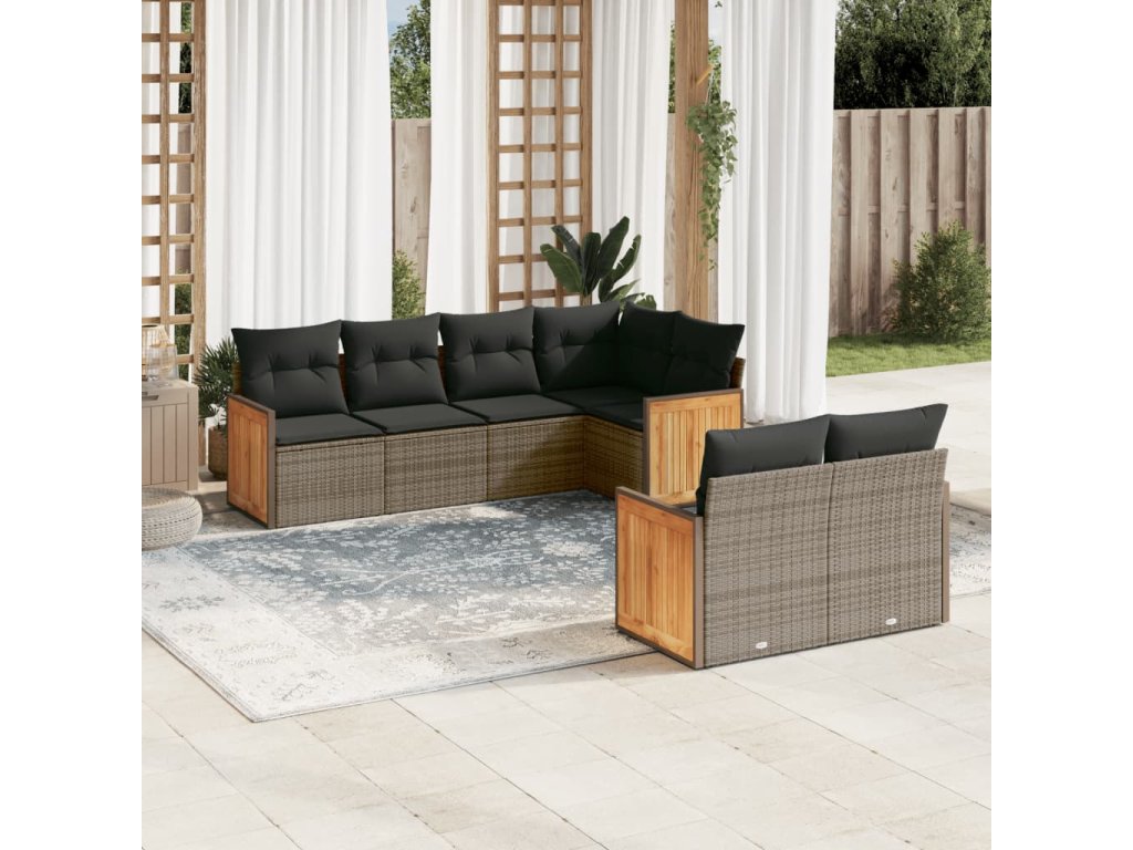7dílná zahradní sedací souprava s poduškami šedá polyratan 3260226