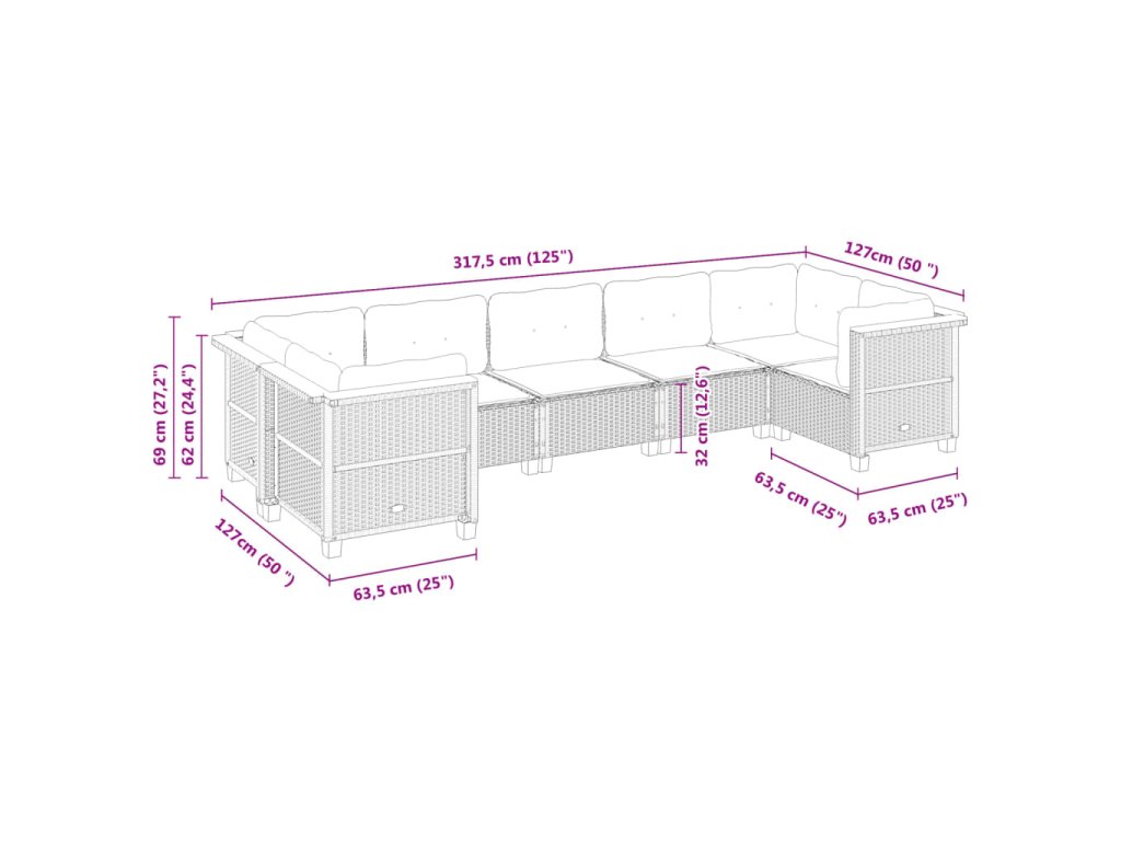 7dílná zahradní sedací souprava s poduškami šedá polyratan 3261972