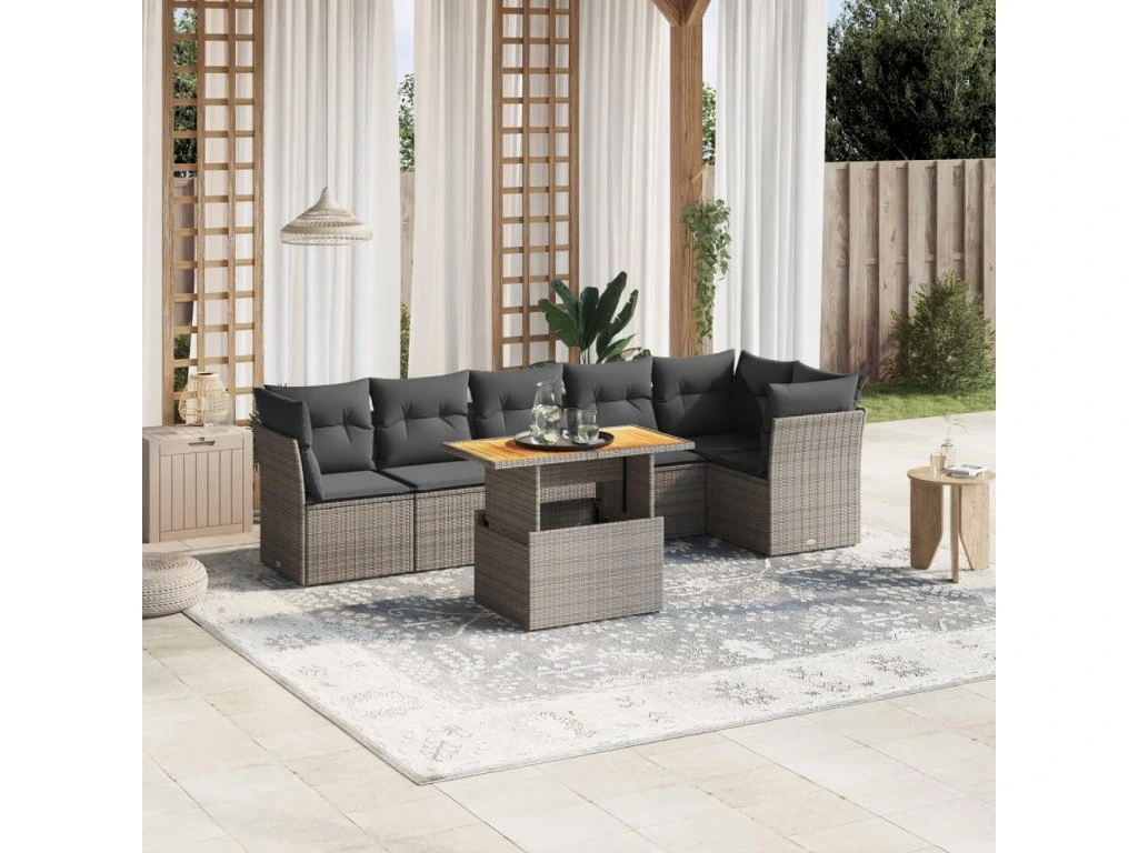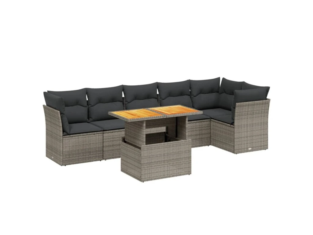 7dílná zahradní sedací souprava s poduškami šedá polyratan 3270843