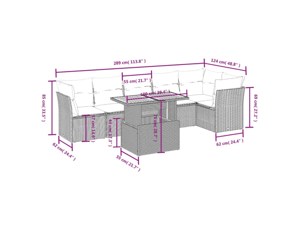 Tato zahradní sedací souprava je dokonalým doplňkem vaší zahrady, terasy nebo dvorku a poskytne vám pohodlné a příjemné místo, kde si můžete povídat s rodinou a přáteli nebo jen tak odpočívat a užívat si pobyt venku.