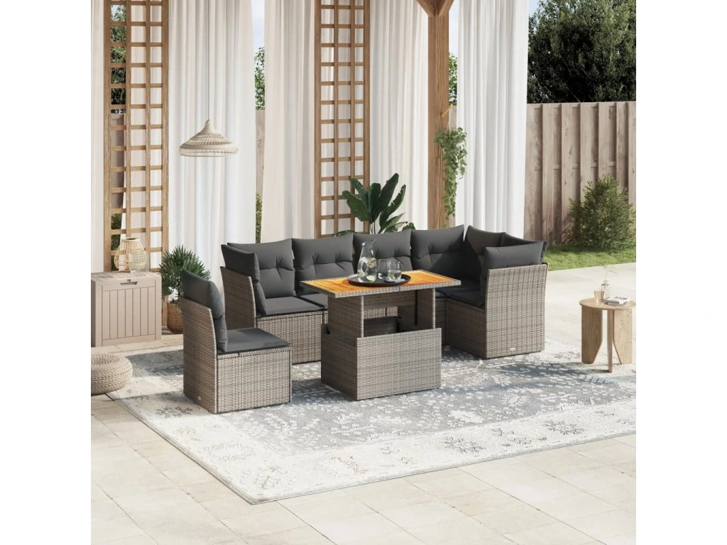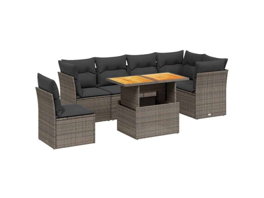 7dílná zahradní sedací souprava s poduškami šedá polyratan 3270857