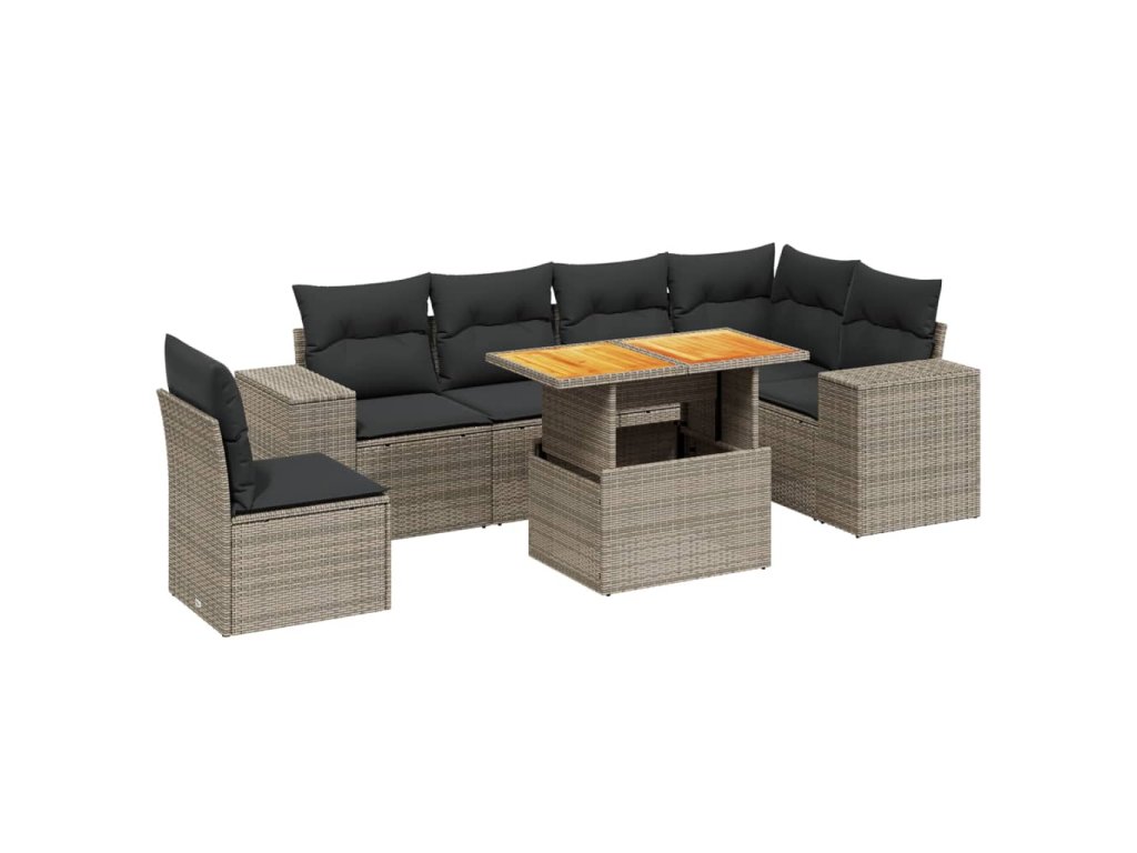 7dílná zahradní sedací souprava s poduškami šedá polyratan 3272663
