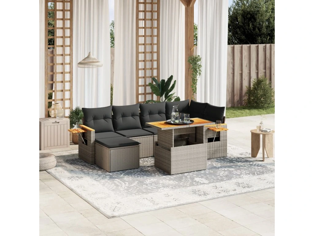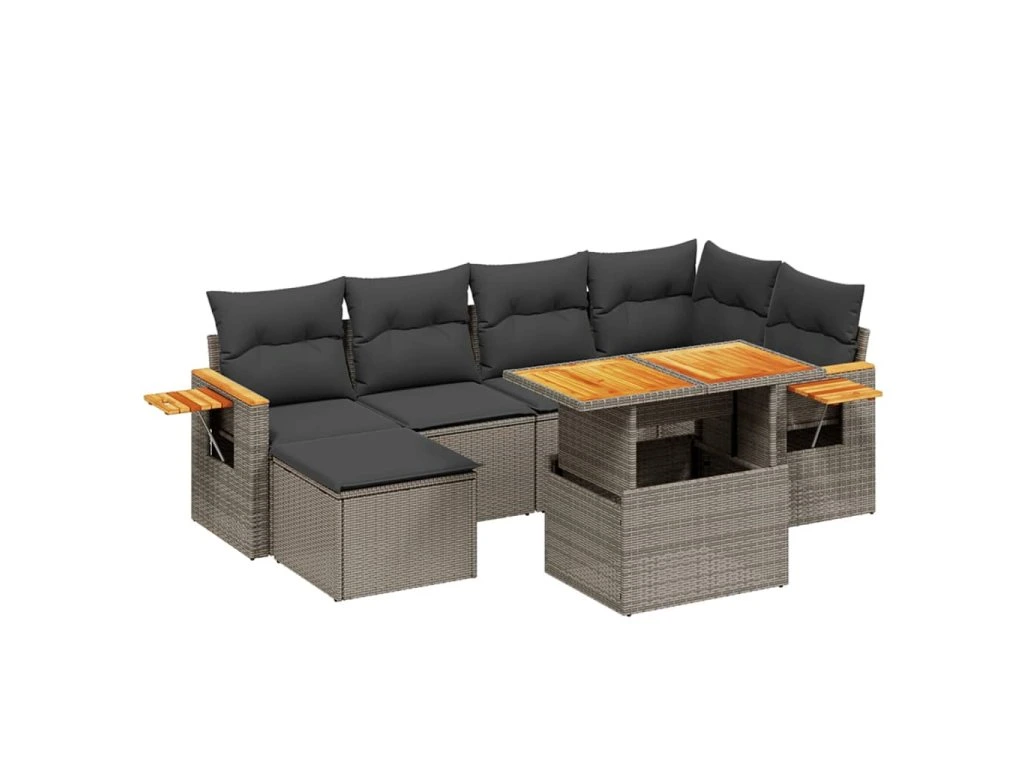 7dílná zahradní sedací souprava s poduškami šedá polyratan 3273622