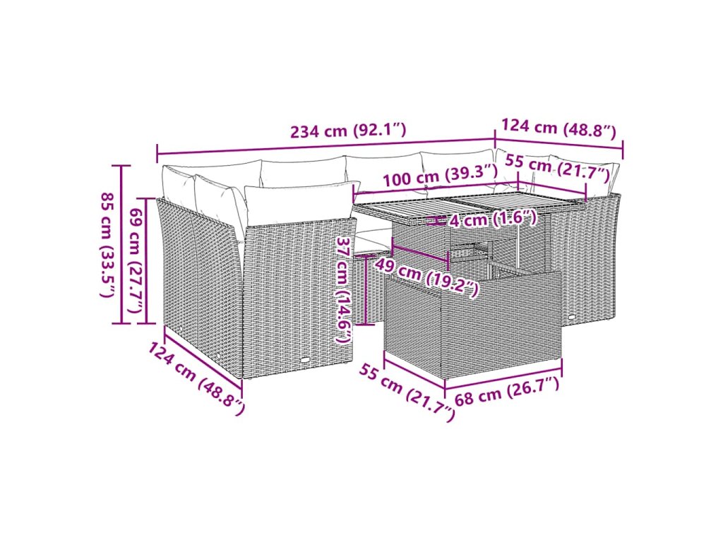 Tato zahradní sedací souprava je dokonalým doplňkem vaší zahrady, terasy nebo dvorku a poskytne vám pohodlné a příjemné místo, kde si můžete povídat s rodinou a přáteli nebo jen tak odpočívat a užívat si pobyt venku.