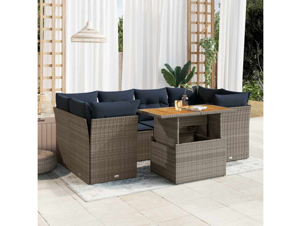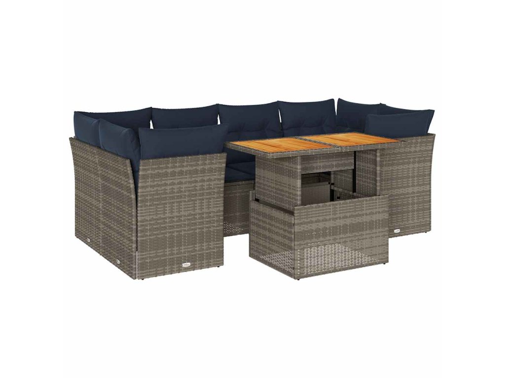 7dílná zahradní sedací souprava s poduškami šedá polyratan 3326896