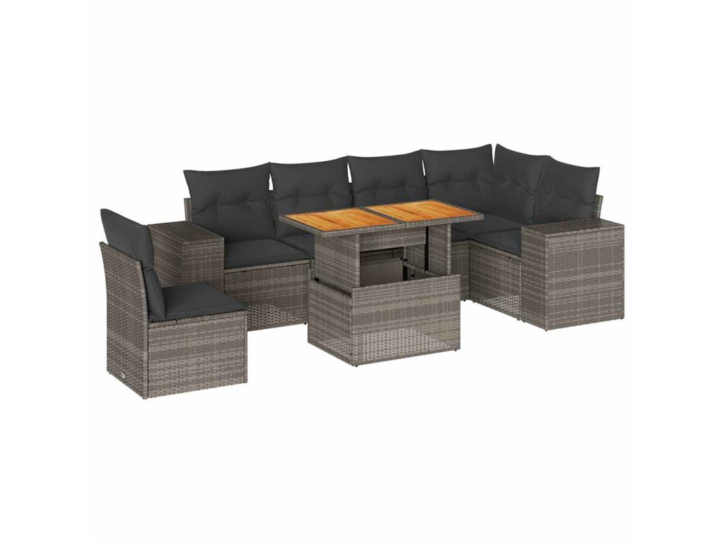 7dílná zahradní sedací souprava s poduškami šedá polyratan 3327385