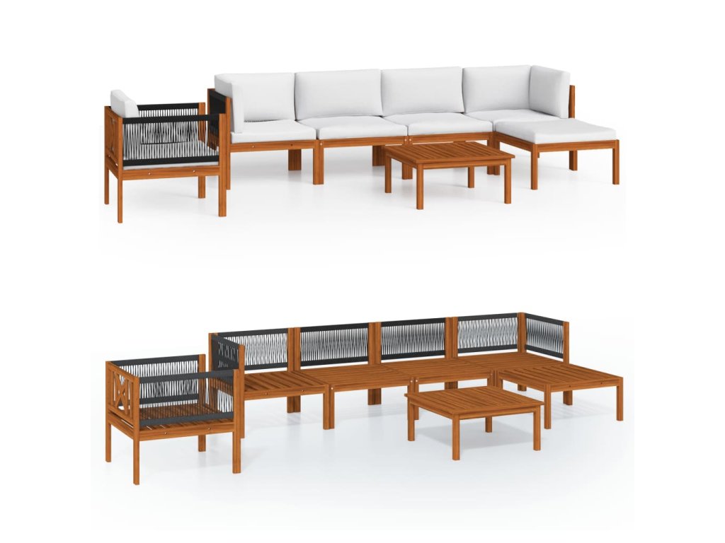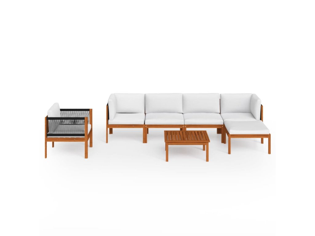 7dílná zahradní sedací souprava s polštáři krémové dřevo akácie a provaz 3057882