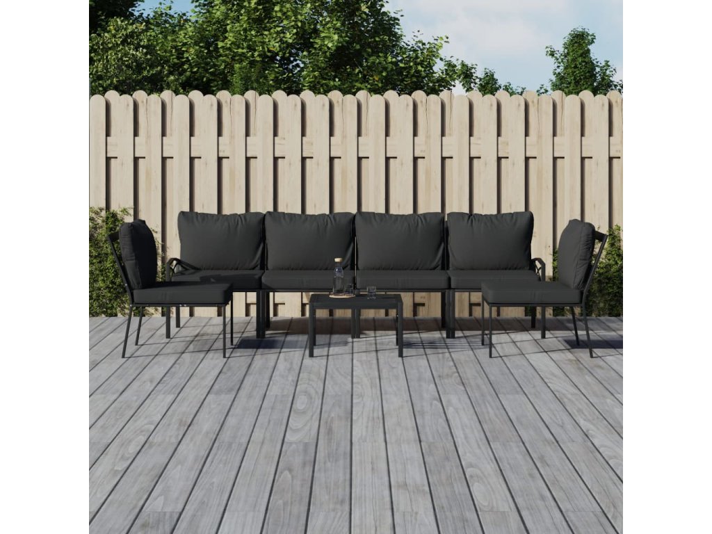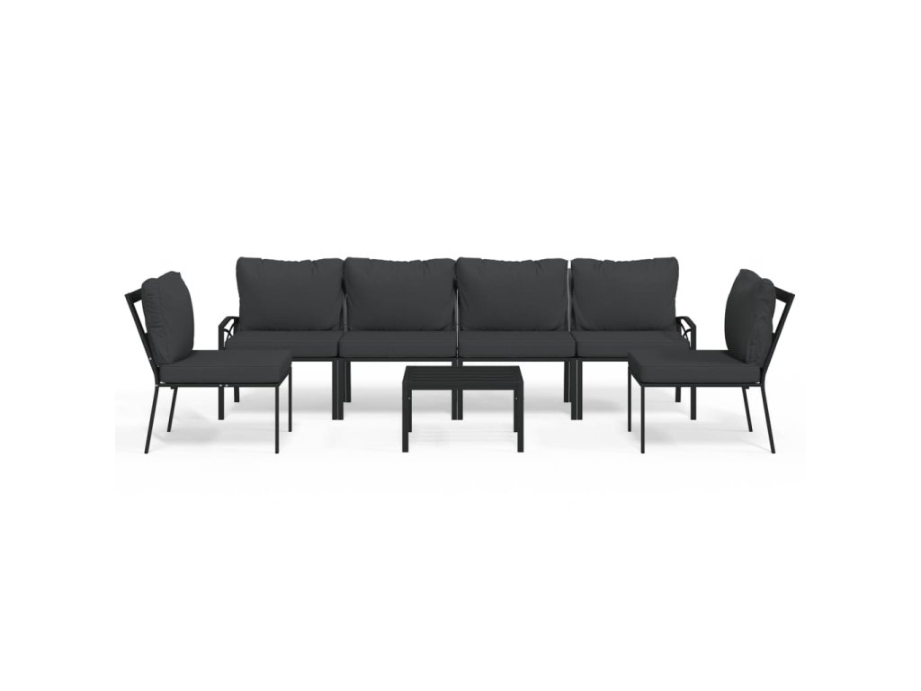 7dílná zahradní sedací souprava s šedými poduškami ocel 3187949