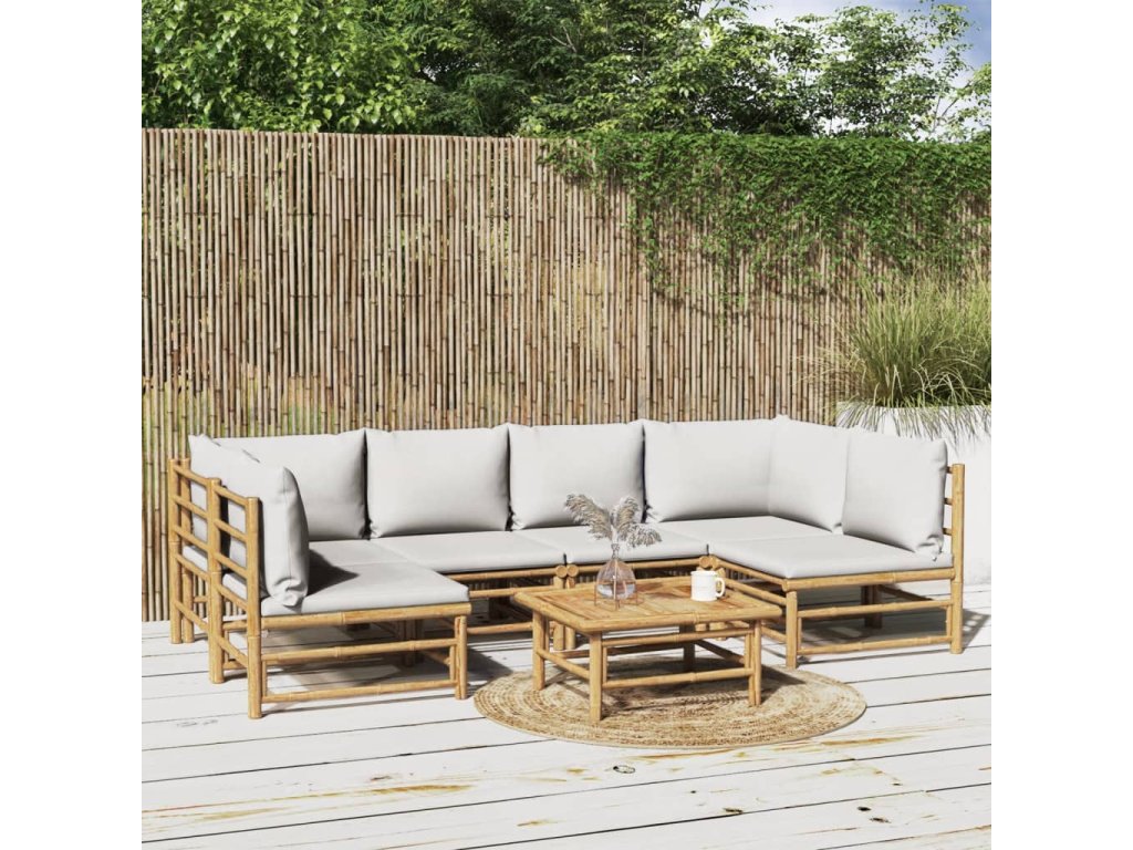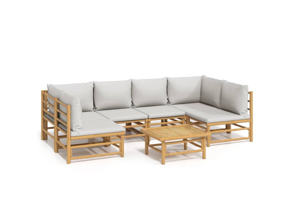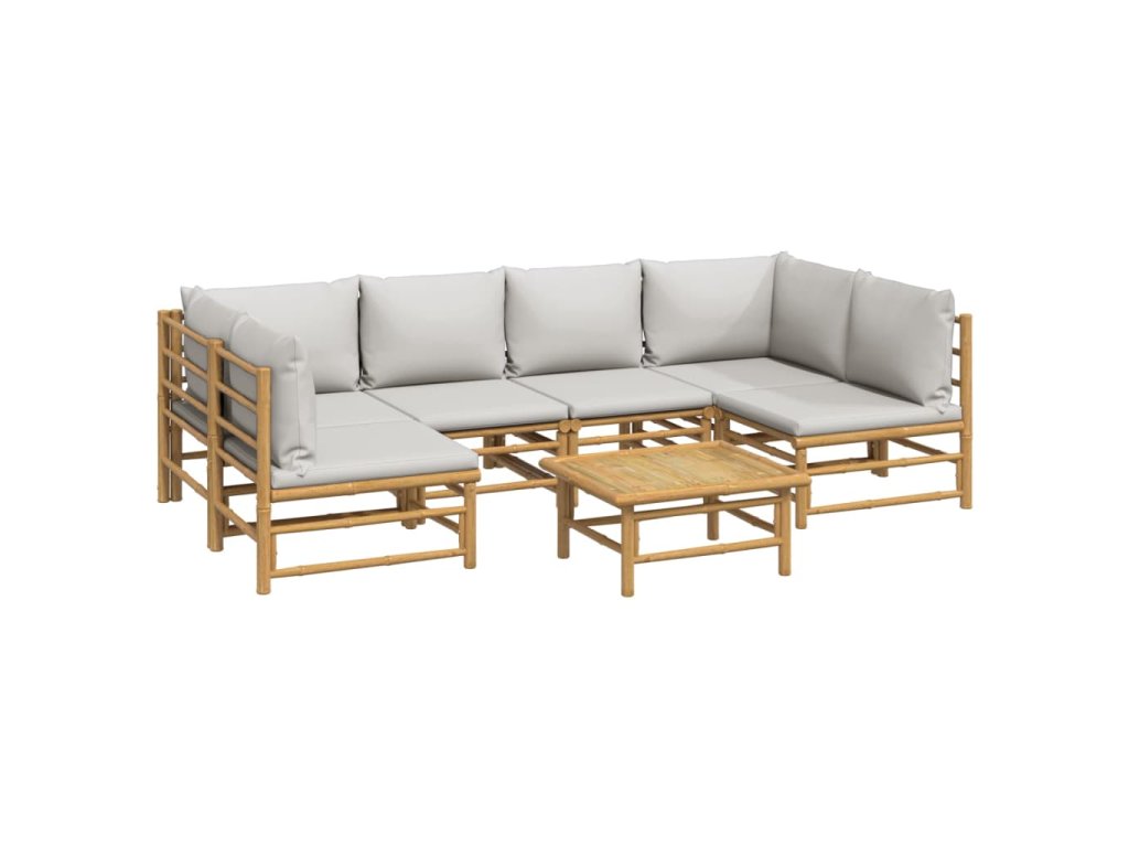 7dílná zahradní sedací souprava světle šedé podušky bambus 3155102