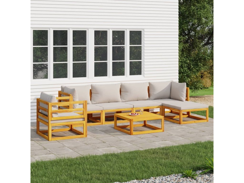 7dílná zahradní sedací souprava světle šedé podušky masiv 3155282