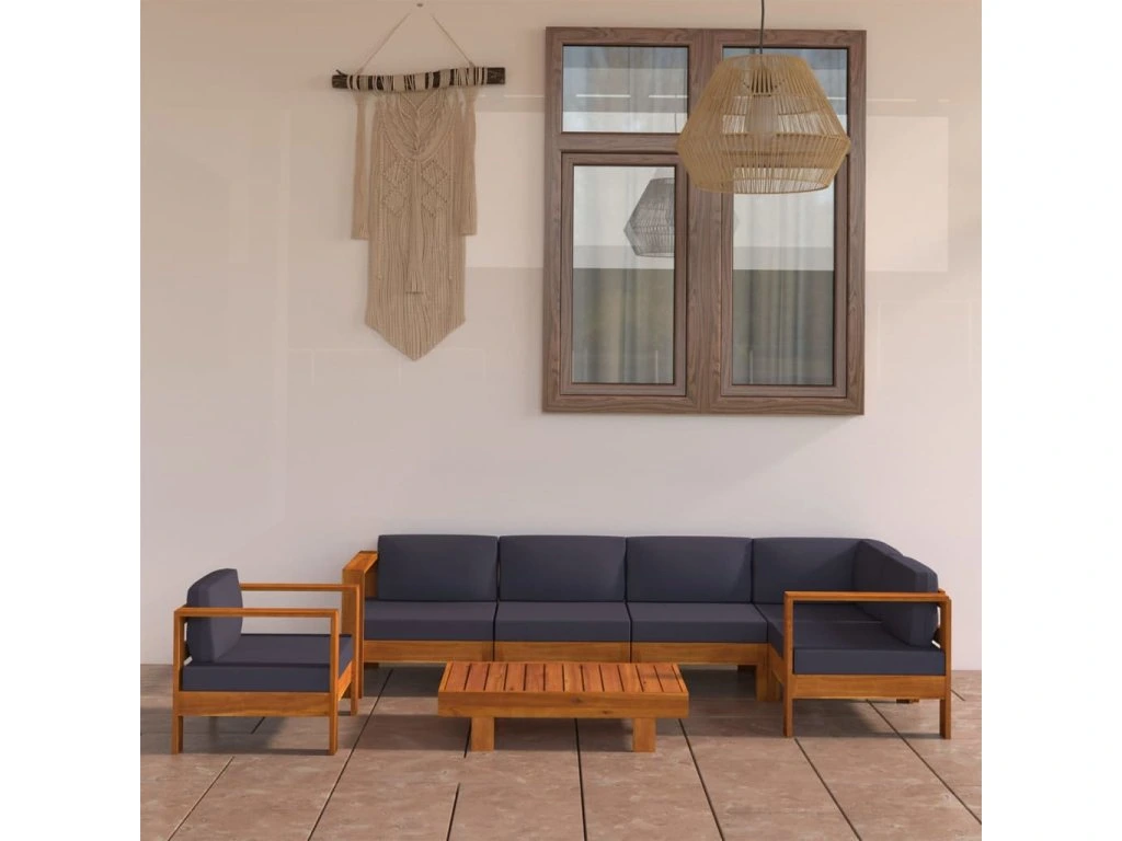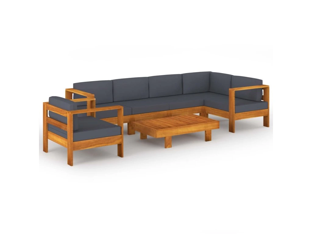 7dílná zahradní sedací souprava tmavě šedé podušky akácie 3057953