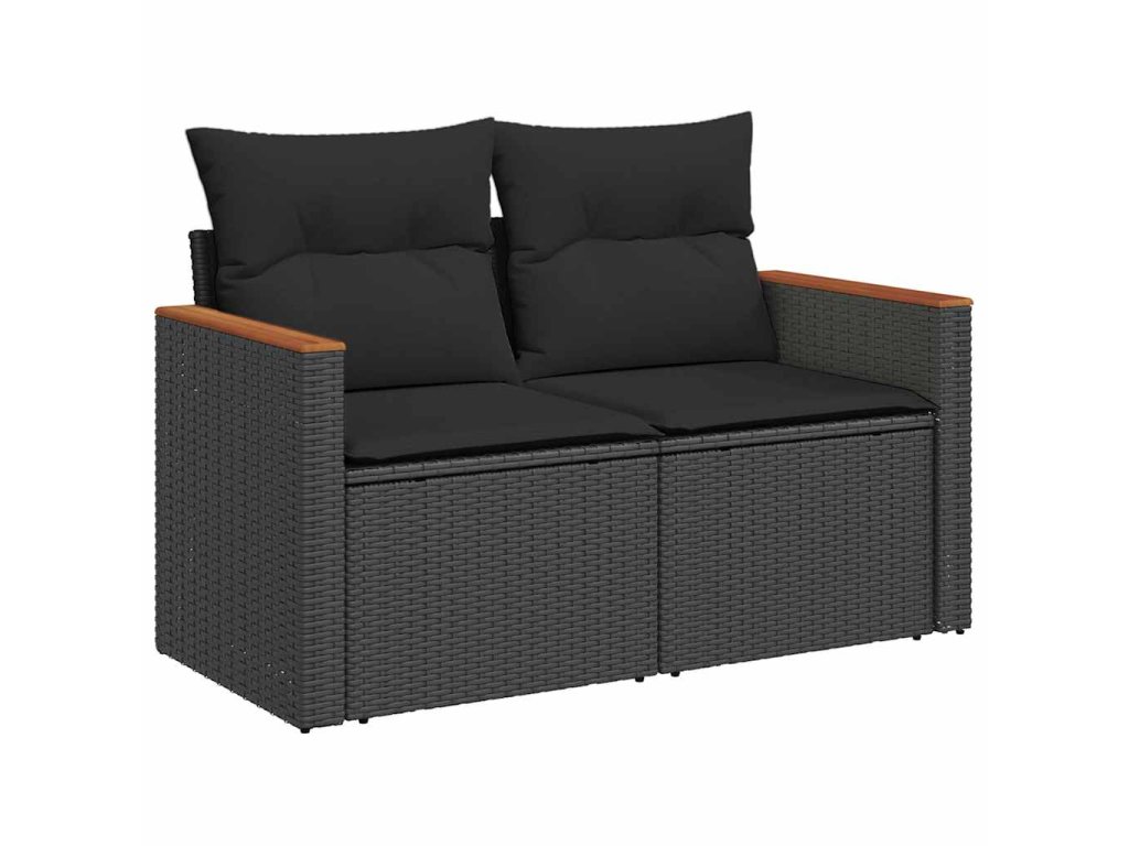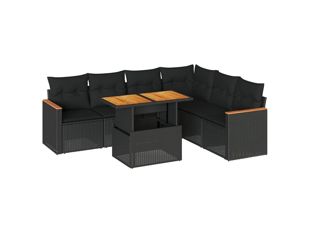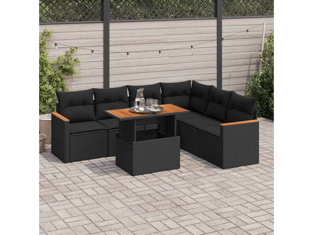 7dílná zahradní sestava s poduškami černá polyratan akácie 3327492