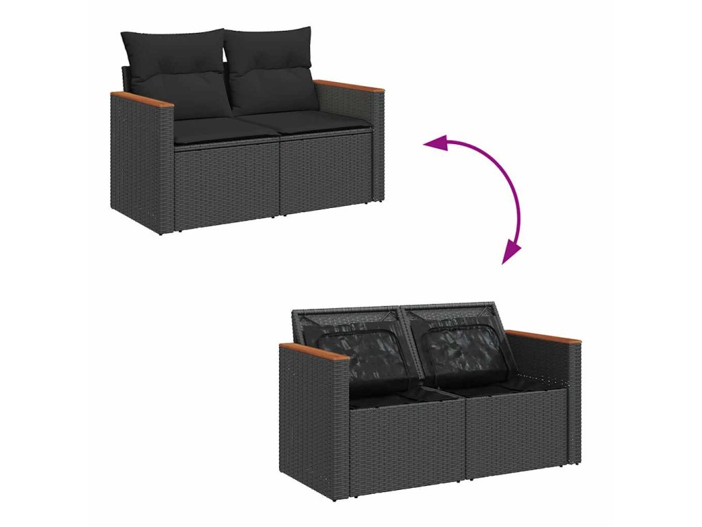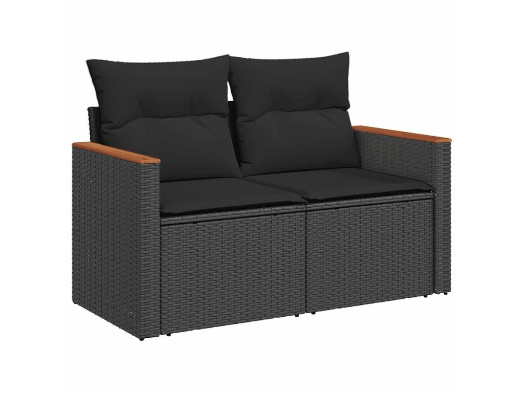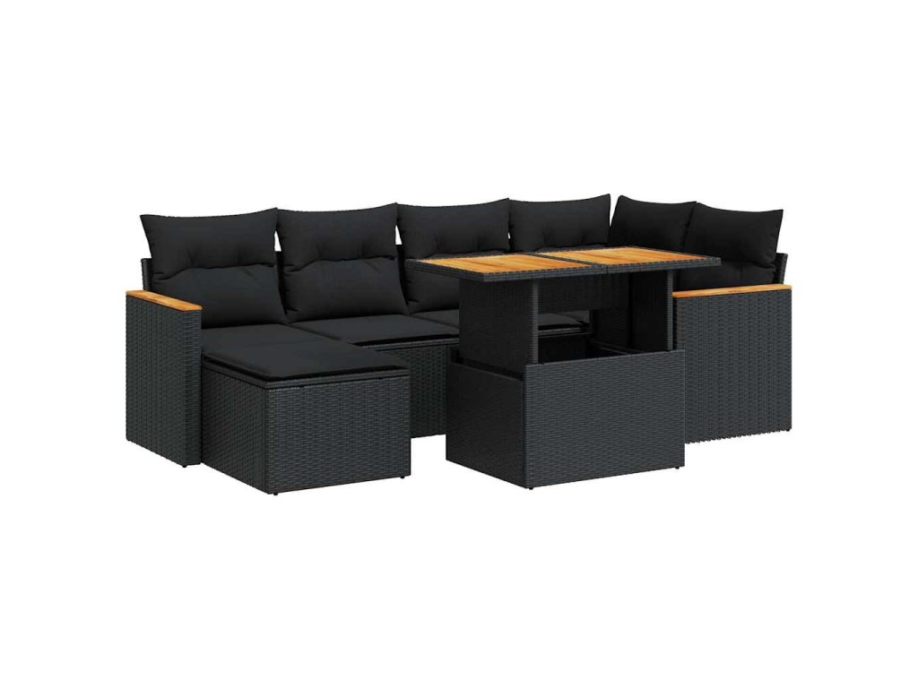 7dílná zahradní sestava s poduškami černá polyratan akácie 3327506