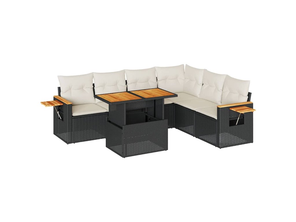 7dílná zahradní sestava s poduškami černá polyratan akácie 3327605