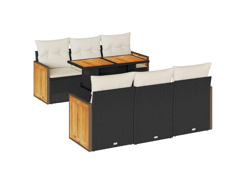 7dílná zahradní sestava s poduškami černá polyratan akácie 3327668