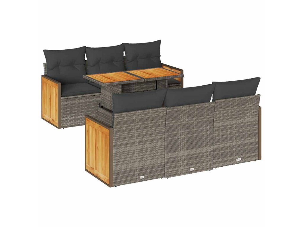 7dílná zahradní sestava s poduškami šedá polyratan akácie 3327672