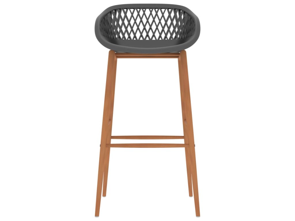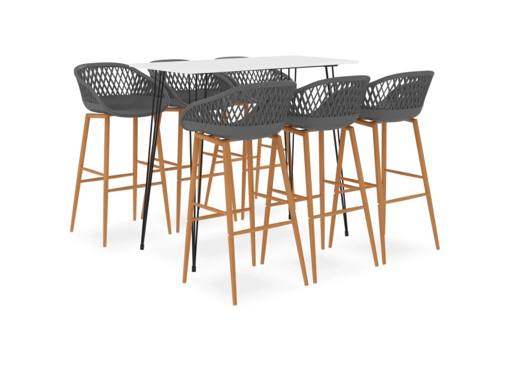 Stolní deska je zhotovená z MDF, takže se snadno čistí. Práškově lakovaný kovový rám přispívá k celkové stabilitě a odolnosti barového stolu. Barové stoličky mají ergonomicky tvarované sedáky s integrovaným nízkým opěradlem v síťovaném provedení. Jelikož jsou vyrobené z robustního PP a podepírají je pevné kovové nohy s termotransferovým potiskem v imitaci dřeva, jsou mimořádně bytelné a dlouho vám vydrží.