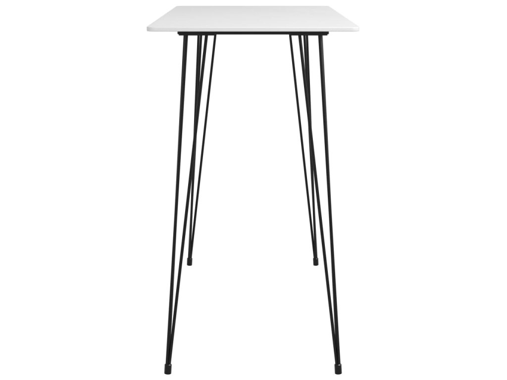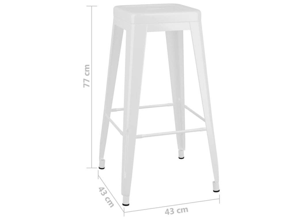 Stolní deska je zhotovená z MDF, takže se snadno čistí. Práškově lakovaný kovový rám přispívá k celkové stabilitě a odolnosti barového stolu. Stoličky jsou vyrobené z natíraného kovu, jsou proto velice pevné a dlouho vám vydrží. Zesílená příčka pod sedákem a opěrka nohou zajišťují lepší rovnováhu. Barové židličky lze navíc stohovat, aby se vám jednodušeji skladovaly, jedná se tedy o dokonalé řešení pro omezené prostory.