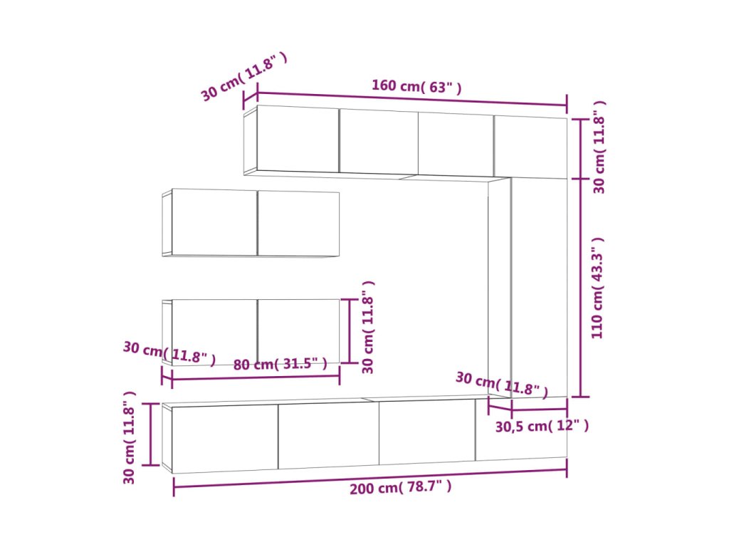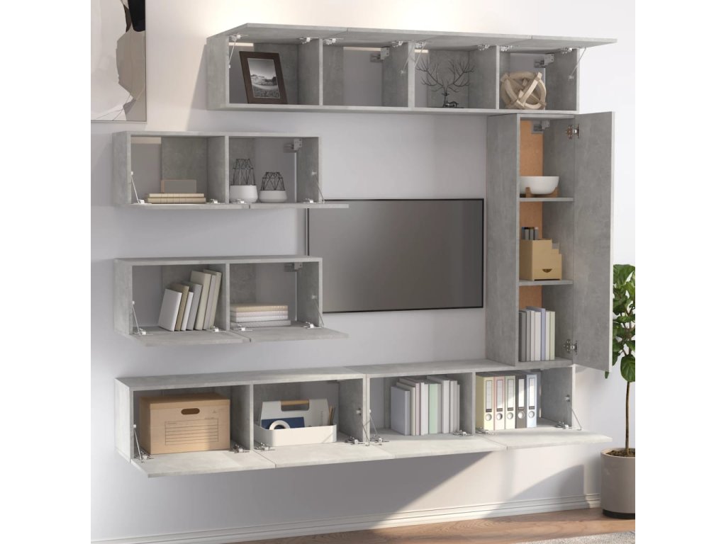 7dílný set TV skříněk betonově šedý kompozitní dřevo 3114561