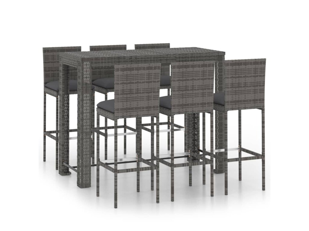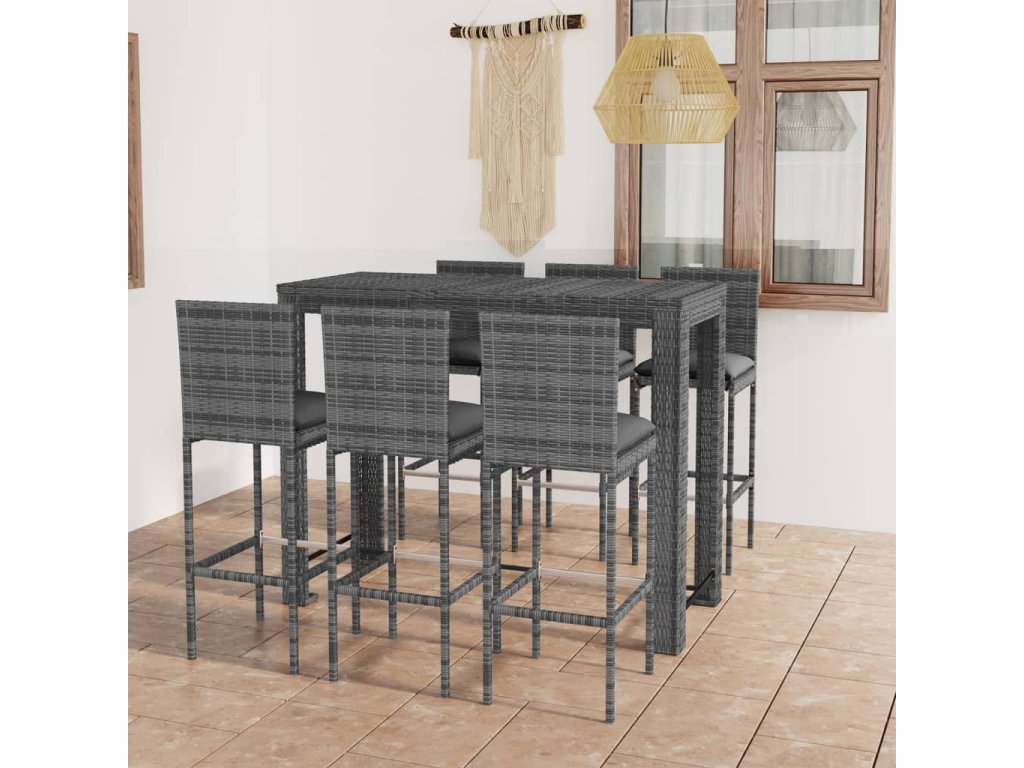 7dílný venkovní barový set s antracitovými poduškami polyratan 3064801