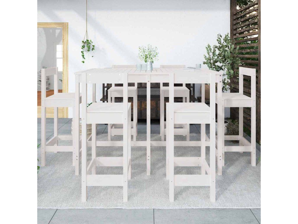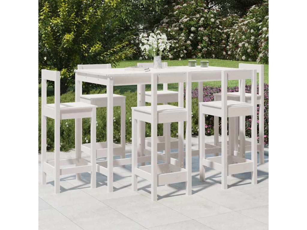 7dílný zahradní barový set bílý masivní borové dřevo 3154761