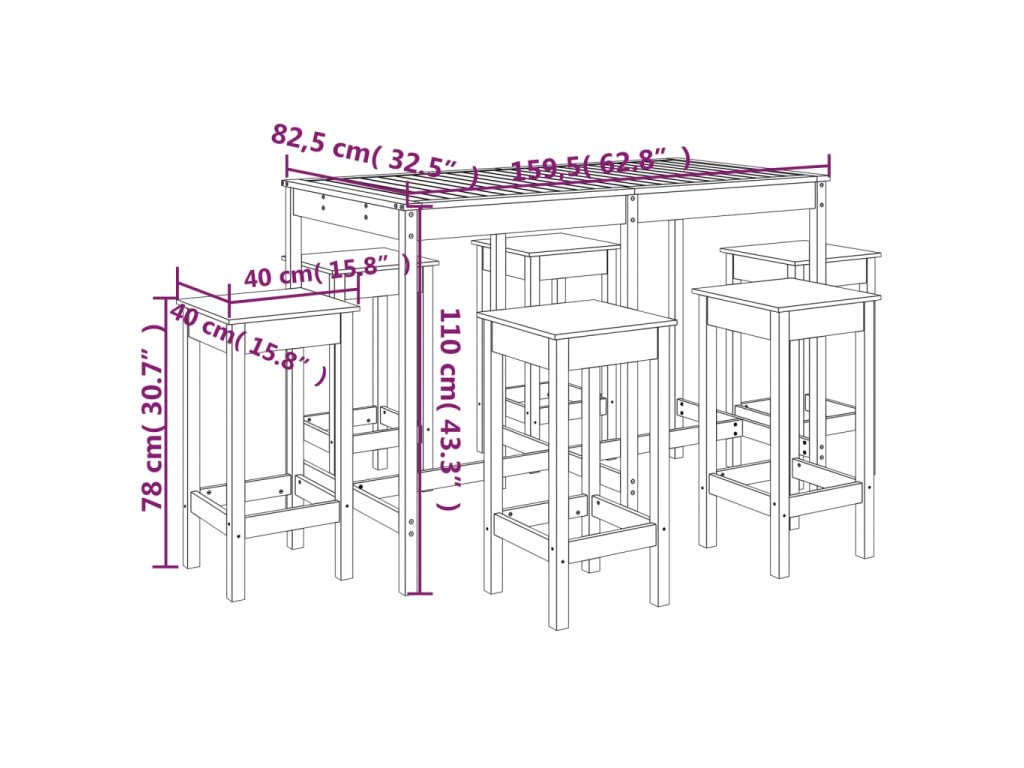 7dílný zahradní barový set masivní borové dřevo 3154755