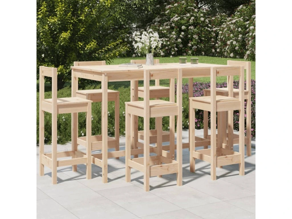 7dílný zahradní barový set masivní borové dřevo 3154760