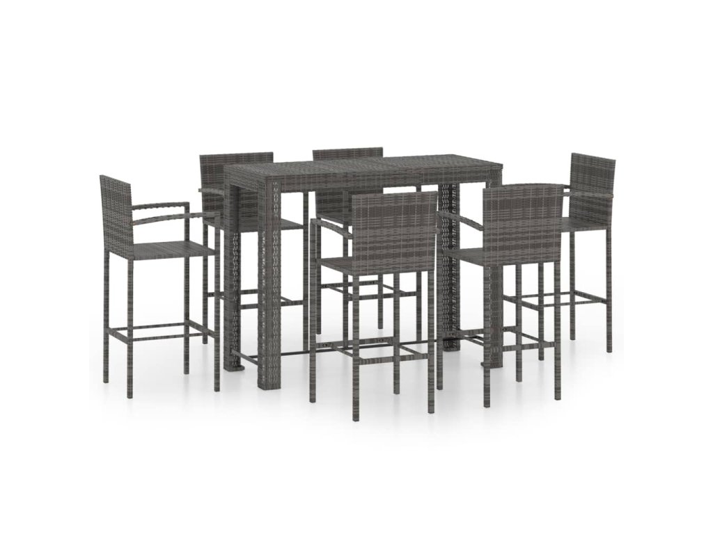 7dílný zahradní barový set s područkami polyratan šedý 3064815