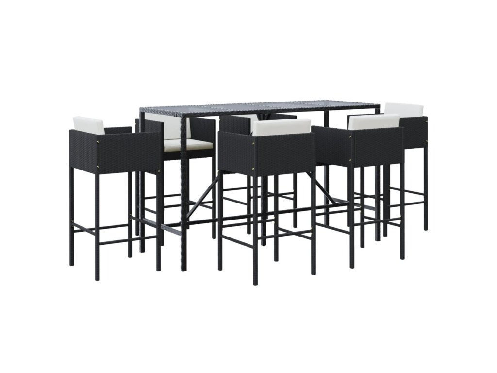 7dílný zahradní barový set s poduškami černý polyratan 3200651